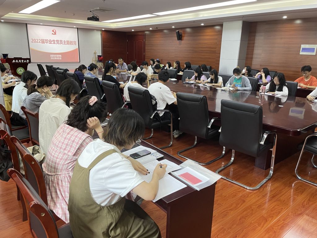 会上,姚洪章首先就毕业生离校程序进行详细讲解,针对毕业生档案派遣、报到证打印、党组织关系转接、学社衔接等事宜进行了介绍,重点说明了党团组织关系转移工作的程序及注意事项,并现场解答了同学们的疑惑,同时对毕业生党员提出了三点要求:一是要做牢记光荣感和使命感是党员应有的精神境界的思想先锋。“共产党员”这个称号,无论在革命战争年代还是在社会主义革命、建设和改革开放时期,都是一个值得人们钦佩的光荣称号,人民的重托、民族的希望,是党员光荣感和使命感的时代根基。二是要成为“小我融入大我,青春献给祖国”作用发挥的先锋。共产党员的先锋模范作用在不同时期有不同内涵,并与当下时代遥相呼应。面对新形势新任务,要更加坚定共产主义理想信念,提高道德修养,全面践行“全心全意为人民服务”的宗旨,为实现好、维护好、发展好最广大人民的根本利益不懈奋斗;三是要做爱党爱国爱校荣校的先锋。作为新时代老员工,要在实现中华民族伟大复兴的接力跑中,一棒接着一棒跑下去,爱党爱国爱校,与伟大祖国同向同行。在各自工作岗位上做出好的表率,在青春的赛道上,奋力跑出最好成绩!