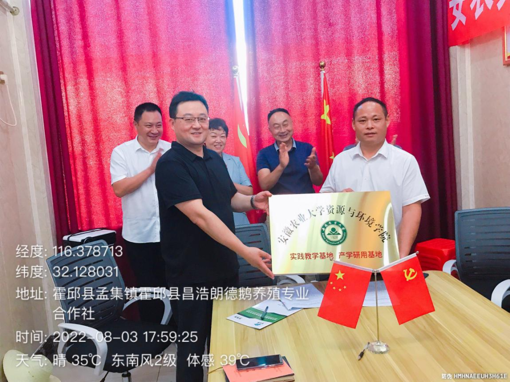 张震和李凤山代表校企双方签订了校企合作协议,并为霍邱县昌浩朗德鹅养殖专业合作社授牌“太阳成官网实践教学基地 产学研用基地”。签约后,学院一行实地调研了合作社养殖场地,巫厚长教授在霍邱县孟集镇政府开展了畜禽养殖污染资源化利用专题培训。