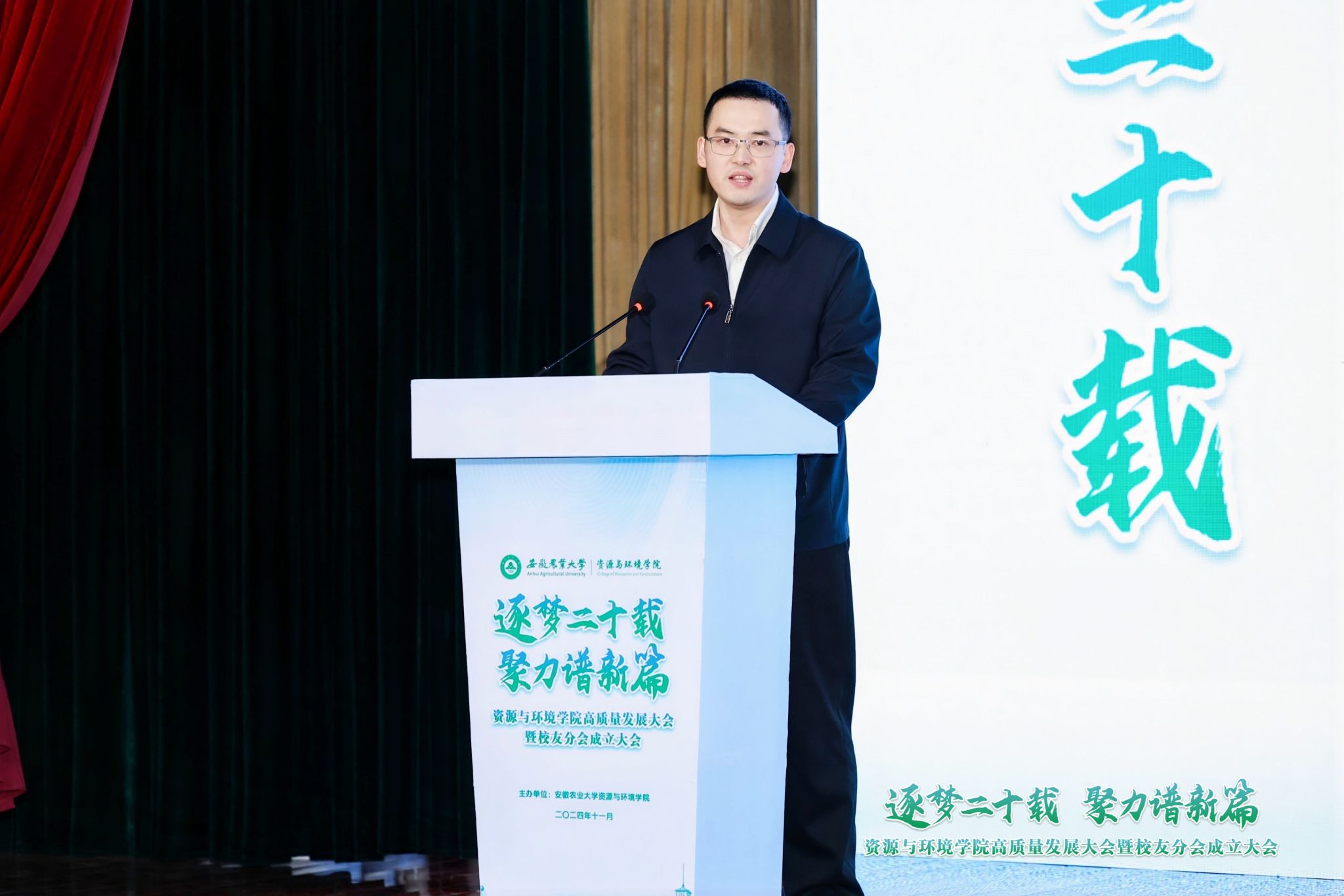 太阳成官网经理张震在大会上作发展报告。他全面回顾了学院成立二十年的办学历程与发展成就,系统总结了学院的办学成果和办学特色经验。他强调,20年是一个里程碑,更是一个高质量发展的新起点。学院将把握历史机遇,全面深化改革,踔厉奋发前行,加快建成全国同类院校先进水平的资环学院,努力在服务乡村全面振兴和中国式现代化美好安徽建设中展现更大作为、作出更大贡献。