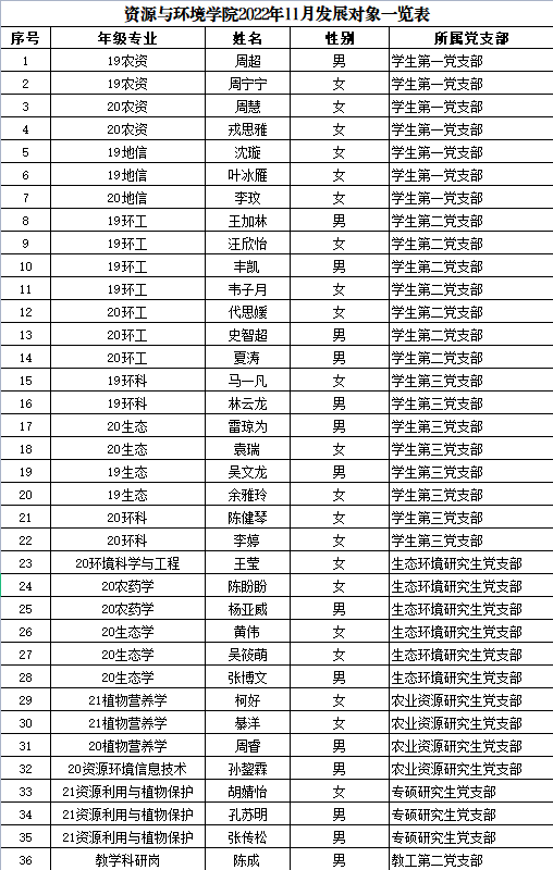 根据本人申请、组织培养和考察,经学院各师生党支部支委会讨论,拟确定周超等35位同学和1位教师为建党对象,现将有关情况公示如下。在公示期内,欢迎广大党员、师生通过信函、电话或直接到党委反映公示对象的思想品质、现实表现、培养教育等方面的情况。公示无异议后,报公司党委会研究确定本期发展对象。