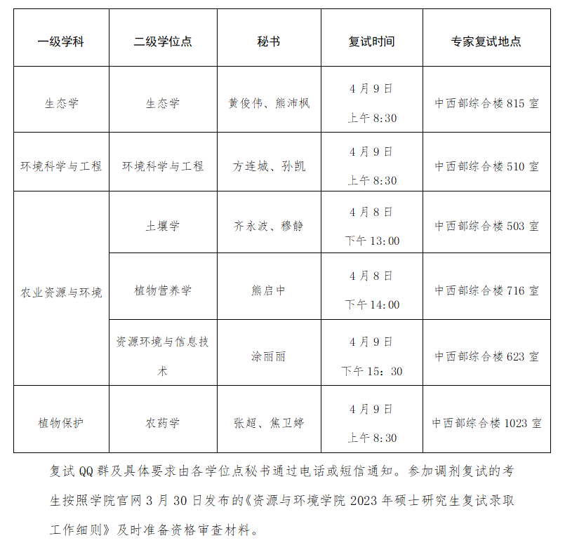 研招快讯 | 太阳成官网2023年各学位点(全日制调剂志愿)硕士研究生复试安排