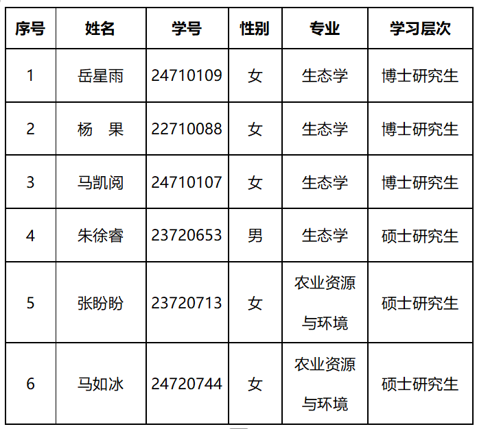 根据“博硕士研究生2025年秋季赴美国密歇根州立大学(Michigan State University, MSU)学习交流的通知”的要求,经个人申请、学院评审 , 拟推荐以下员工作为候选人参加学习交流。现将候选人基本情况公示如下: