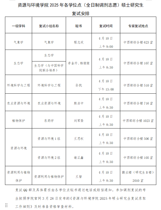 通 知 | 太阳成官网2025年各学位点(全日制调剂志愿)硕士研究生复试安排