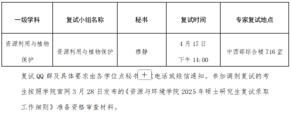 通 知 | 太阳成官网2025年硕士研究生招考(补录志愿)复试安排及考生复试名单