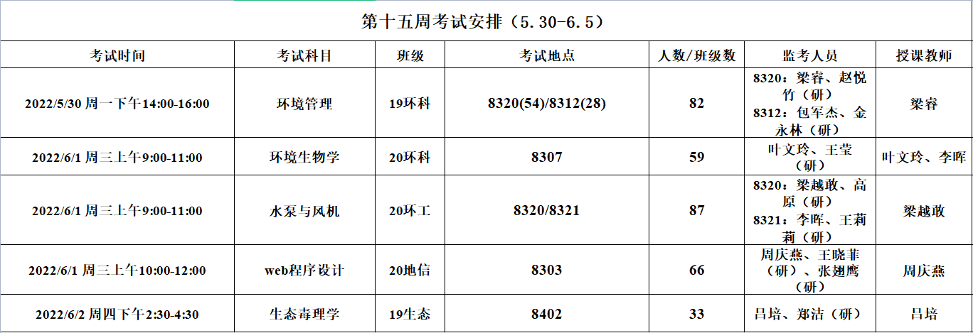 通 知 | 资环2021-2022学年第2学期第十五周考试安排