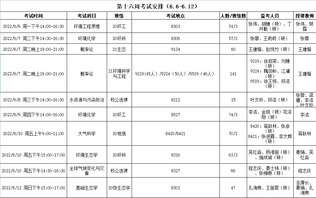 通 知 | 资环2021-2022学年第2学期第十六周考试安排