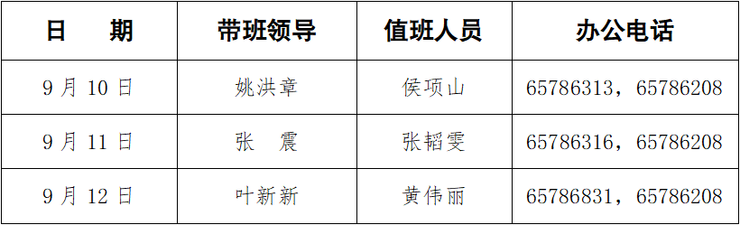根据学校2022年中秋节放假安排,在假期间,为确保各教研室、实验室、办公室的安全,做好疫情防控和防火、防盗等安全工作,学院特安排值班人员如下,要求值班人员认真履行职责,按时值班。