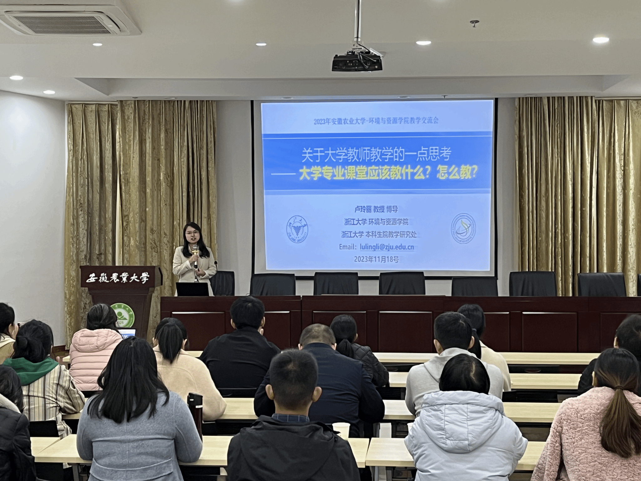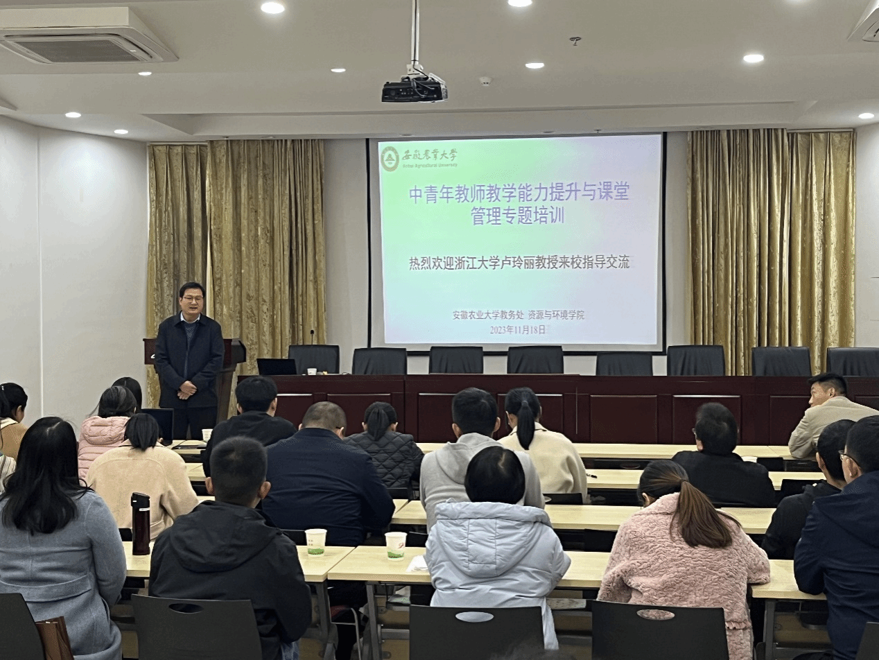 本网讯 11月18日,教务处、太阳成官网于资环学院久易学术报告厅举行“中青年教师教学能力提升与课堂管理专题培训”,特邀教育部知名专家学者、浙江大学教务处副处长卢玲丽教授作题为“关于大学教师教学的一点思考—— 大学专业课堂应该教什么?怎么教?”的报告。教务处副处长徐峰到会指导。会议由学院副经理张震主持,资环学院、材料与化学学院、生科院、理学院、体育部等学院的60余名教师参加了专题辅导。