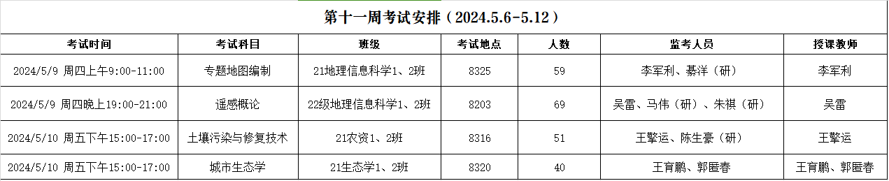 资环学院2023-2024-2第十一周考试安排.xlsx