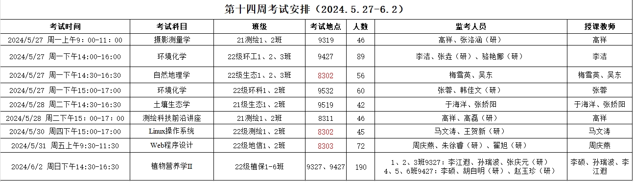 资环学院2023-2024-2第十四周考试安排.xlsx