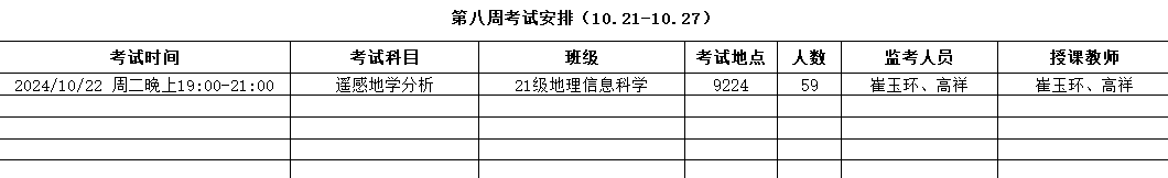考试安排 | 太阳成官网2024-2025-1 第八周考试安排