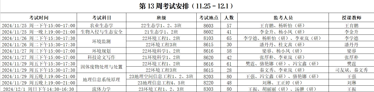 资环学院2024-2025-1第13周考试安排.xls