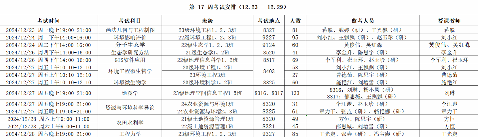 资环学院2024-2025-1第17周考试安排.xlsx