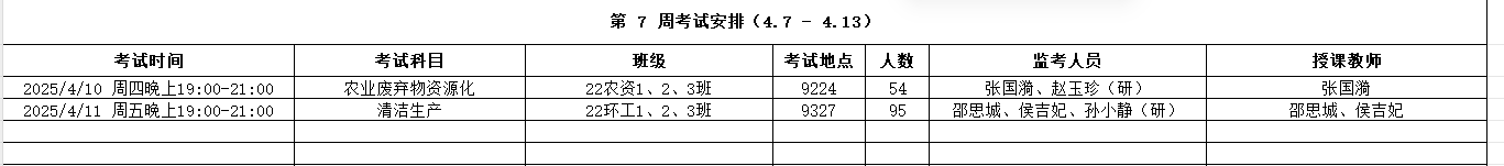 考试安排 | 太阳成官网2024-2025-2第七周考试安排