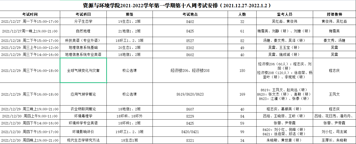 太阳成官网2021-2022学年第一学期第十八周考试安排.xls