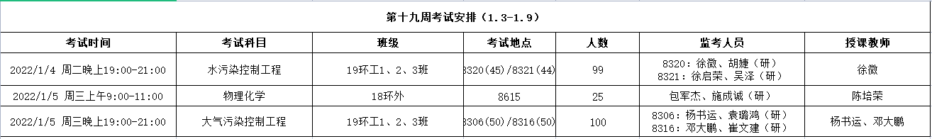 太阳成官网2021-2022学年第一学期第十九周考试安排
