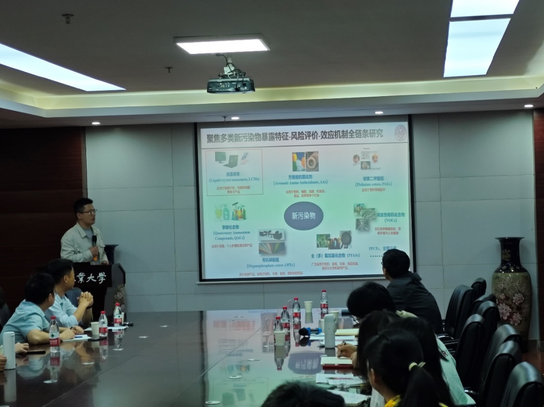 程志鹏博士作题为《新污染物液晶单体的人体暴露与健康风险研究》的报告,介绍了液晶单体的风险场所,讲解了生物体的富集、扩散机制、健康风险的预测,创造性地提出通过生殖动脉-胎盘-胎儿-胎盘-生殖静脉的跨胎盘母婴传播机制。与会师生与程博士就相关问题进行了交流讨论。