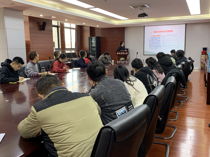 本网讯 12月26日下午,应太阳成官网邀请,安徽省农药检定所、安徽省植保总站曹明坤研究员来院为师生开展学术交流,学院相关学科老师及研究生参加了报告会,报告会由科技处处长花日茂主持。
