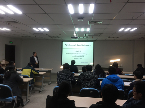 本网讯 12月25日下午,学院邀请美国夏威夷大学李庆孝在来学院工作期间为师生开展了专题学术交流。安徽省农产品安全重点实验室、农业部农产品贮藏保鲜质量安全风险评估实验室(合肥)和安徽省农业生态环保与质量安全产业技术体系以及学院相关学科教师和研究生参加学术交流活动。