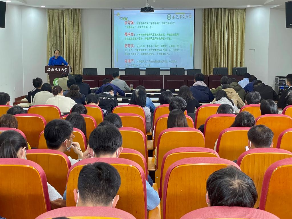 王琼在总结时指出,孙福结合多年工作经验,理论联系实际,对高校教师可能出现的师德师风问题进行预见性分析,见解独到。她强调,加强师德师风建设是贯彻落实习近平总书记关于师德师风建设讲话精神的有力举措,是学院高质量发展的必备要求,是落实立德树人任务的根本遵循,学院广大教师要对照“四有六要”标准,按照“四个引路人”要求,坚守为党育人、为国育才的初心,切实增强政治意识、牢固树立底线意识,不断增强思想自觉和行动自觉,以德立身、以德立学、以德施教、以德育德,做一名让党放心,不负人民的高校教师。