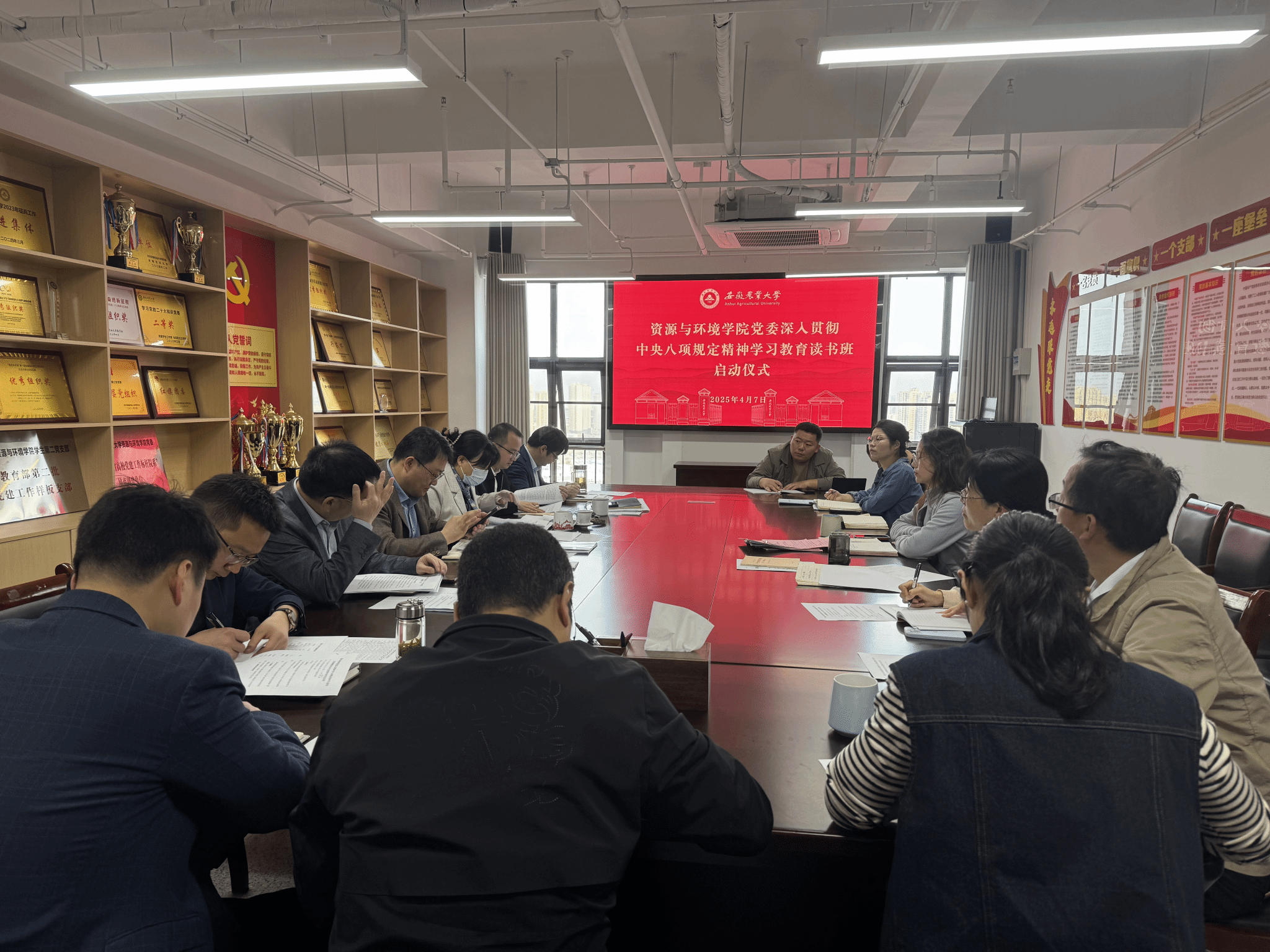 本网讯 4月7日,公司党委以党委理论学习中心组(扩大)会议的形式,在勤业楼2010会议室举办深入贯彻中央八项规定精神学习教育读书班。全体班子成员、党委委员、支部书记参加读书班。