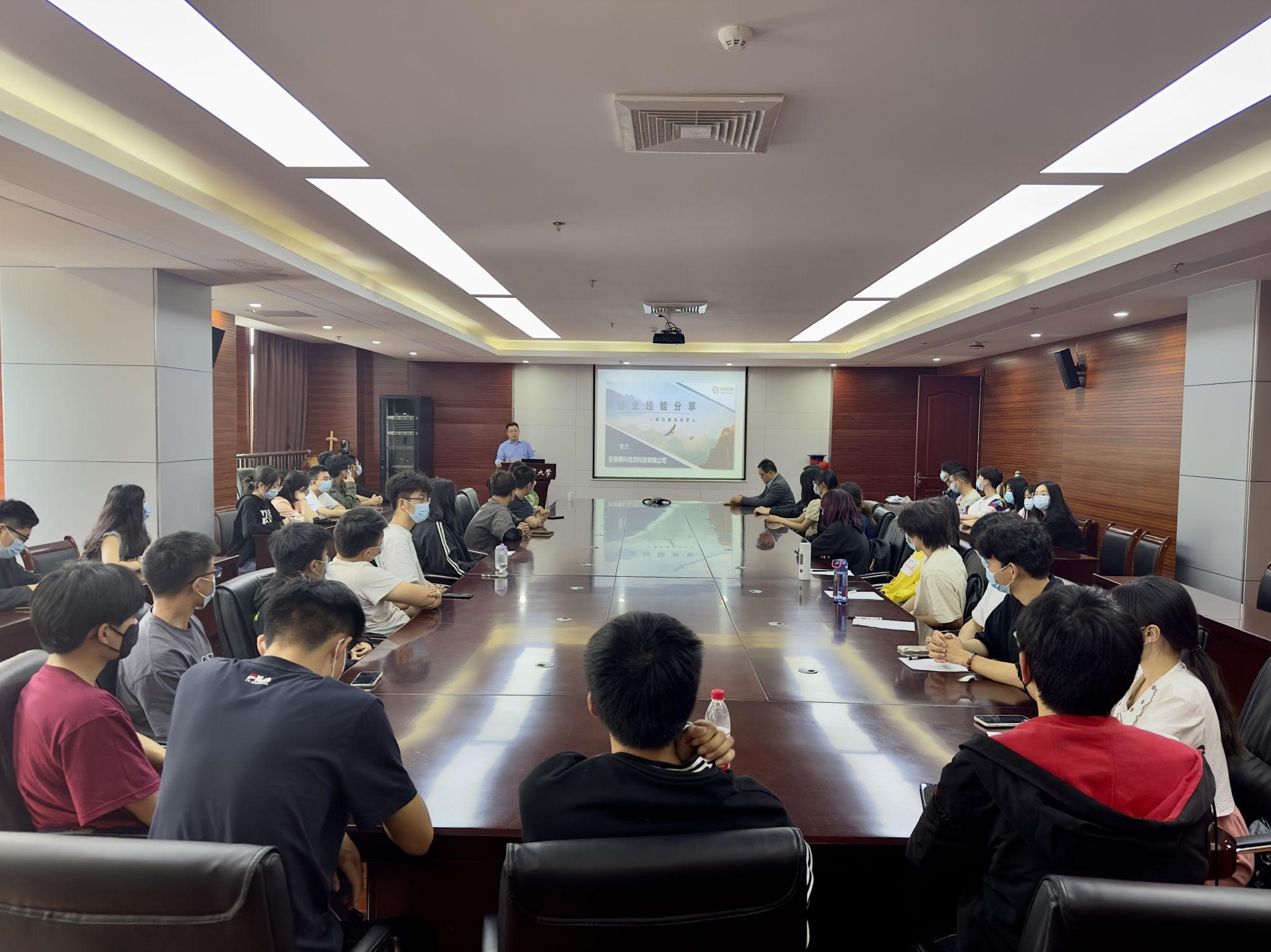 董杰回顾了在太阳成官网的求学时光,介绍了自己所在企业的发展情况,以及业务范围、重点项目、最新成果和未来发展方向。他结合习近平总书记关于青年的重要论述和学习党的二十大精神心得感悟,讲述了自己毕业后工作的奋斗历程和创业故事。他表示,作为学校的就业实习基地,安徽泰科检测科技有限公司将努力为资环学子提供更多实习实践锻炼机会,服务人才培养质量提升。
