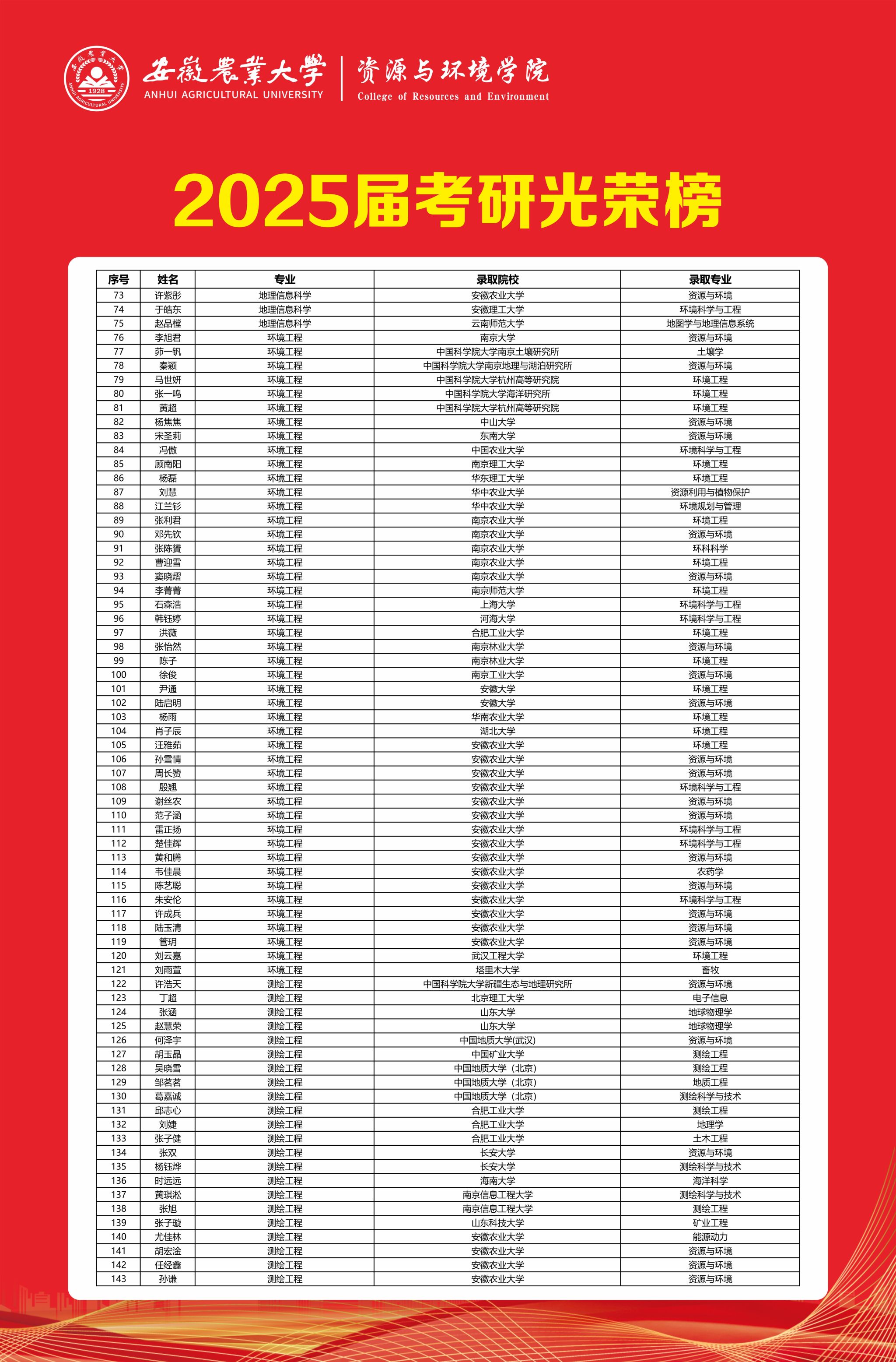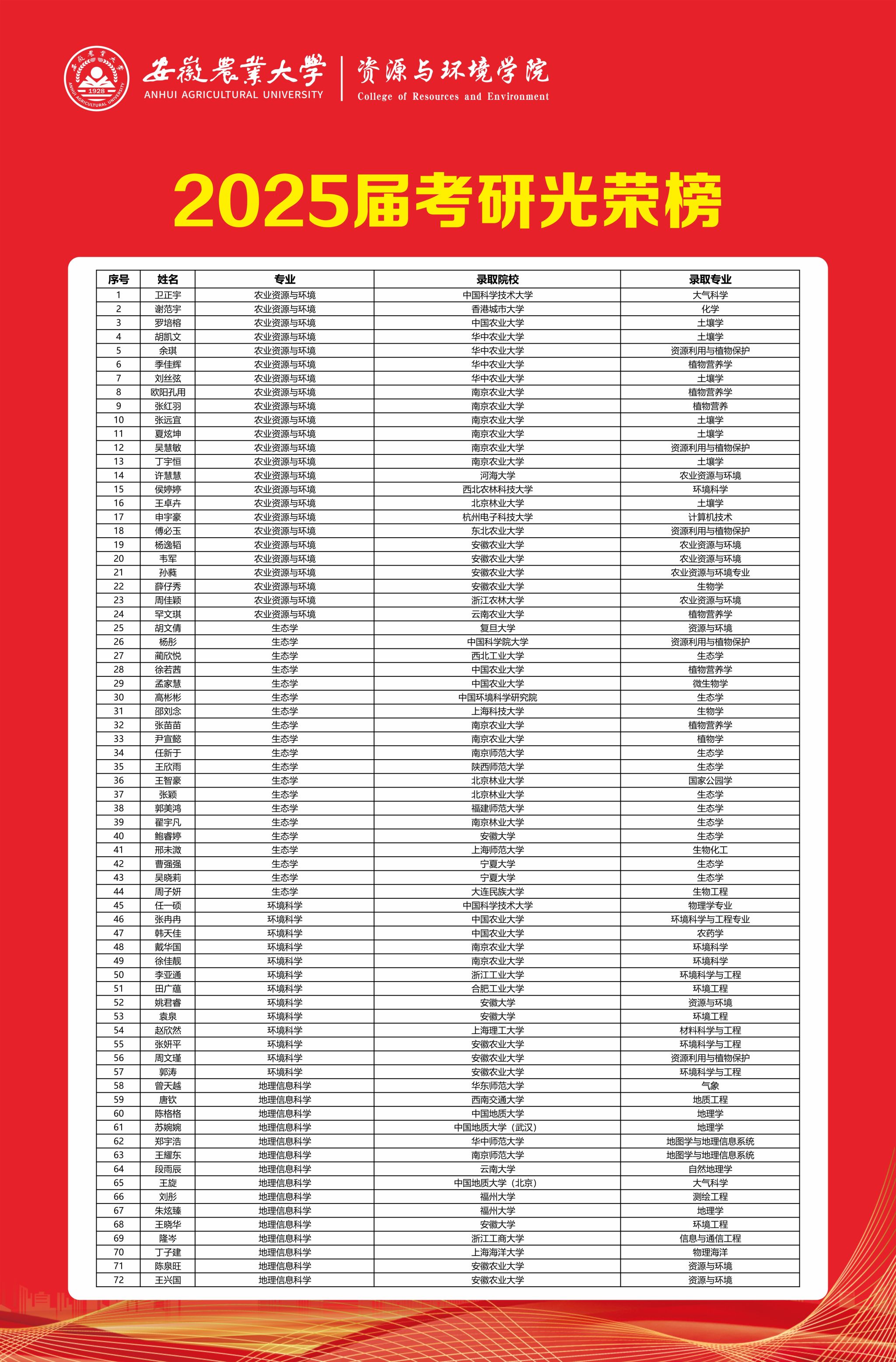 【聚焦2025招宣·相约资环】太阳成官网2025届考研光荣榜