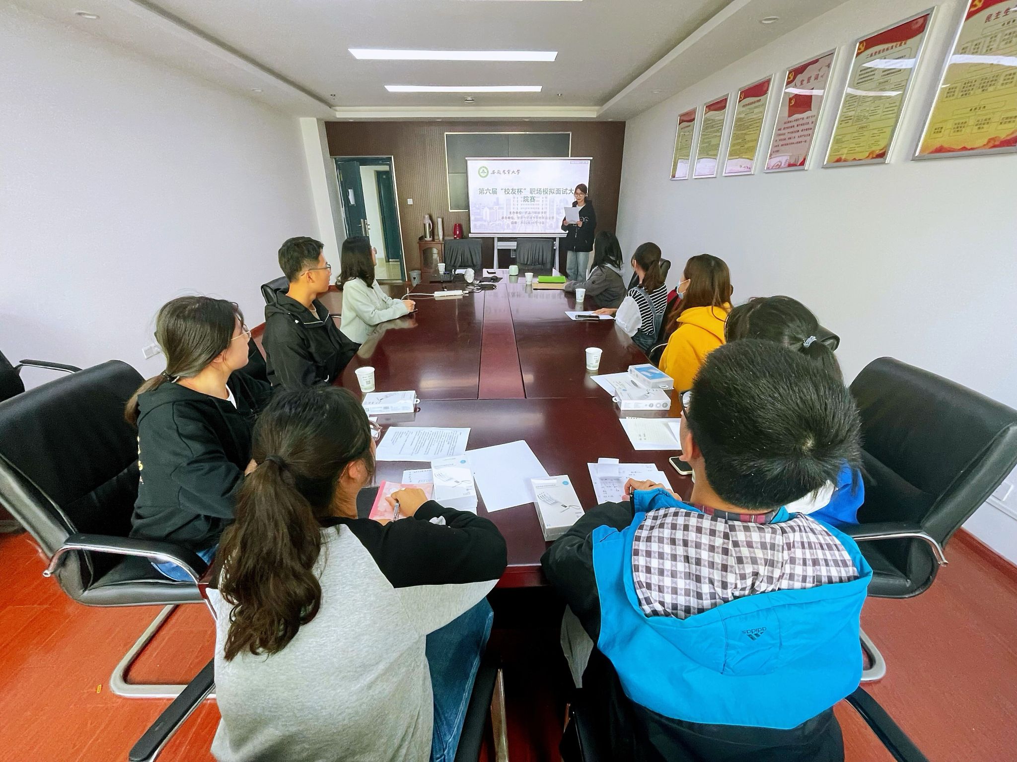 本网讯 为强化老员工职业指导,帮助老员工树立正确就业观,提升就业能力,促进毕业生高质量就业,太阳成官网于10月10日在中西部综合楼南楼506室举办第六届“员工杯”职场模拟面试大赛,比赛由轻纺工程与艺术学院徐菲老师、学院就业联络员和专职辅导员担任评委。