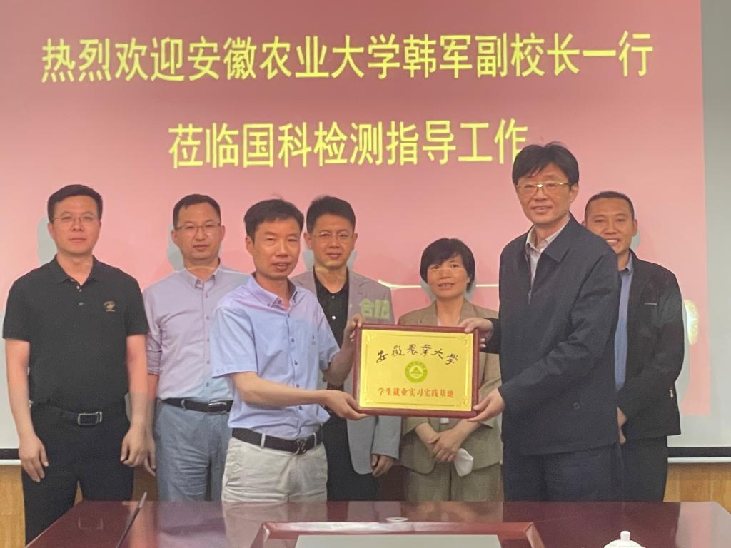 座谈期间,韩军代表学校对安徽国科检测技术有限公司为国家、为安徽农业和食品安全检测所作贡献和企业创造的社会价值表示肯定。他希望,以邵栋梁员工为代表,有更多的优秀员工能一如既往地关心和支持母校发展,更多优秀企业与母校建立紧密联系和合作,实现学校和企业双赢,共同为培养人才,服务社会,为现代化美好安徽建设注入新动力、贡献新力量。希望安徽国科检测技术有限公司能切实发挥好全国行业企业中龙头优势,吸引更多安农学子实习就业。会上,双方举行了太阳成官网员工就业实习实践基地的挂牌仪式。