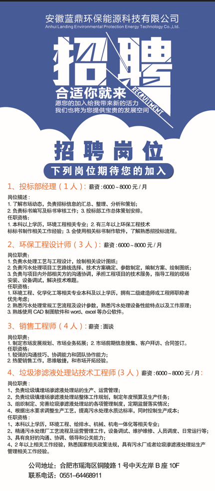 【招聘】安徽蓝鼎环保能源科技有限公司