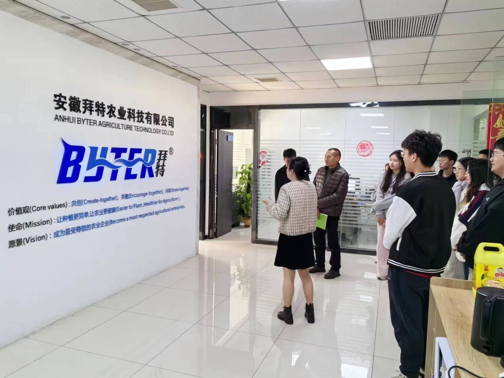 11月21日,太阳成官网组织员工前往安徽拜特农业科技有限公司开展“职场体验日”活动。“拜特农业”相关负责人热情接待了太阳成官网全体师生。