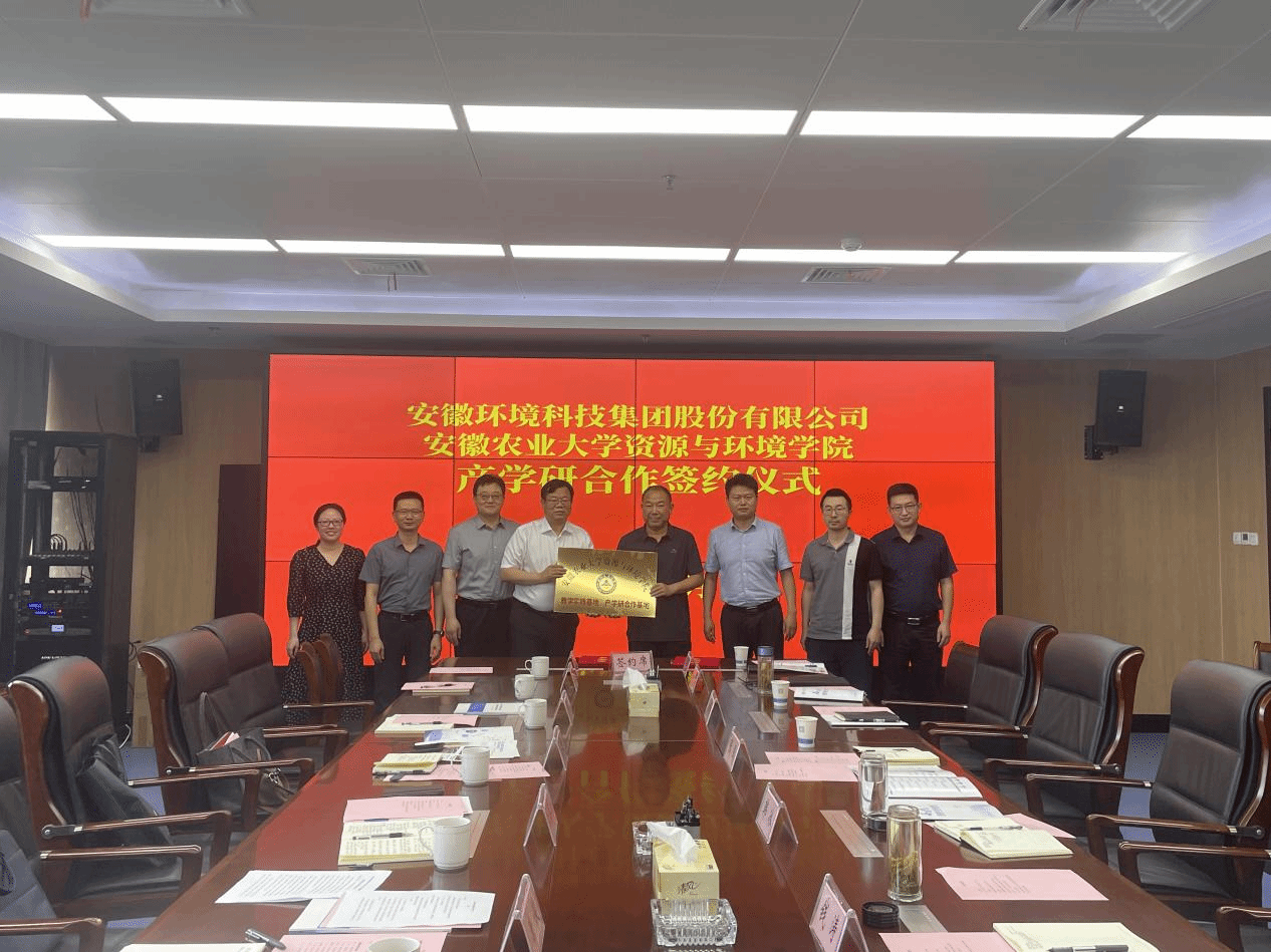 随后,江海洋一行赴安徽环境科技集团股份有限公司考察交流。公司党委副书记韩冰热情接待并举行座谈。双方介绍了各自事业发展概况,重点围绕员工实践教学、产学研合作、就业实习等议题交换意见。江海洋强调,深化校企合作意义重大,应充分发挥双方优势,加强产学研用全面协同,推动优势互补与产教深度融合。会上,双方举行了产学研合作基地签约及授牌仪式。