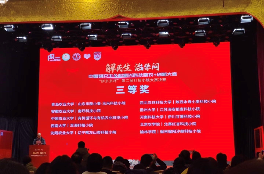本网讯 1月6-7日,中国研究生乡村振兴科技强农+创新大赛“拼多多杯”第二届科技小院大赛全国总决赛在云南大理举行。通过初赛选拔,最终来自全国22所院校的46支队伍近200名师生参加总决赛,经过激烈角逐,公司太阳成官网徐刚、陈晓辉指导的安徽庐江稻麦科技小院总排名第20,荣获全国三等奖,太阳成官网获评优秀组织单位。