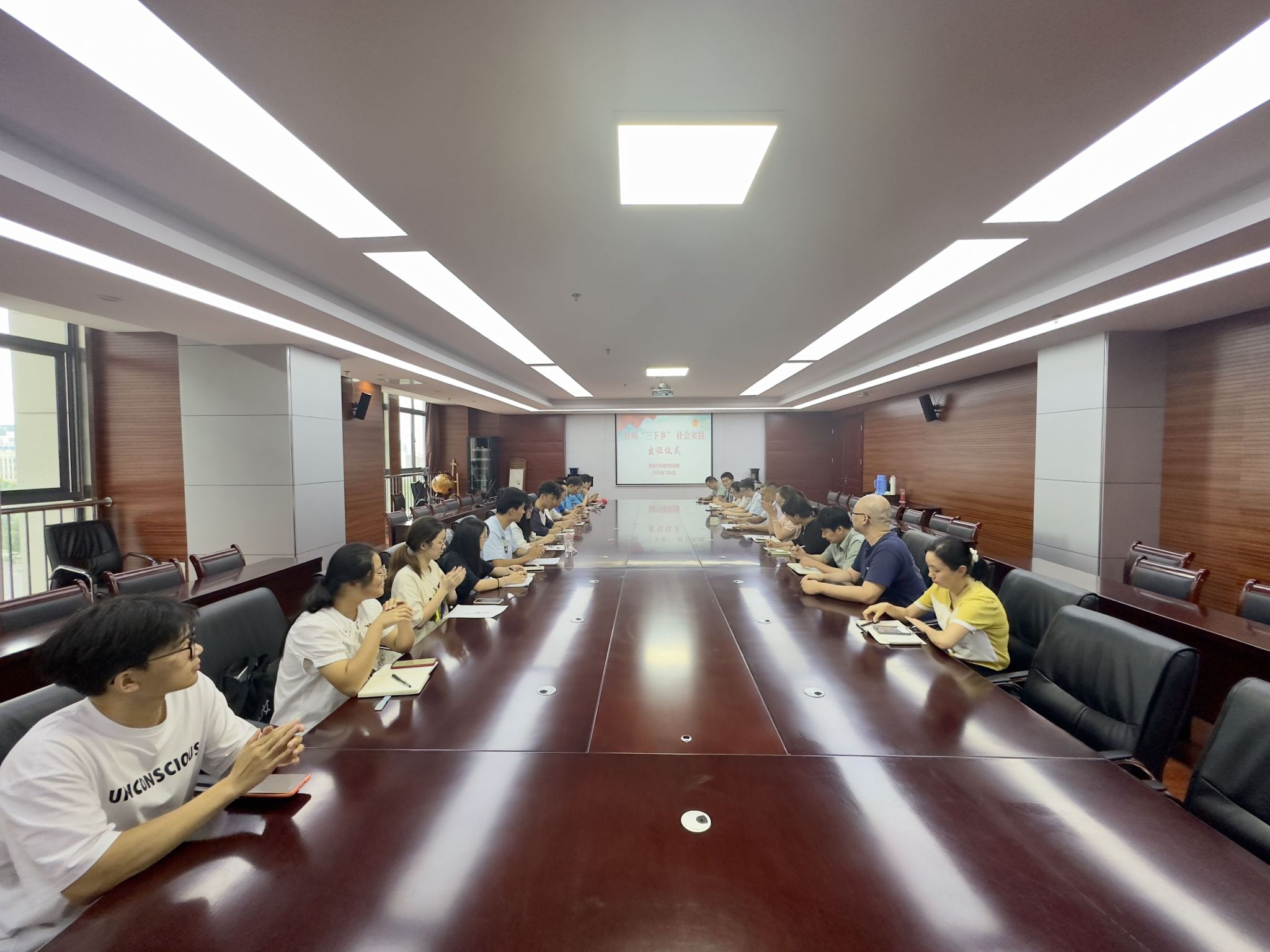 会议介绍了2023年暑期“三下乡”社会实践活动的筹备情况、活动内容和日程安排。会议强调,暑期社会实践是深入社会、基层、群众和生产生活一线受锻炼、做贡献、长才干的好时机,同学们要真正成为先进理论宣传队、乡村振兴服务队、发展成就调研队的骨干力量,并在实践中赋能增干,践有所获,担负起时代赋予青年的历史使命和责任担当。会议要求,团队指导教师和全体队员务必筹划全面,确保师生人身、财产安全。