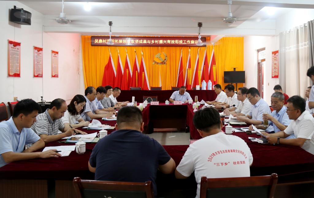 调研座谈会上,夏涛认真听取了公司派驻吴寨村驻村工作队关于工作开展情况的汇报和颍上县农业农村局关于深化结对帮扶、巩固拓展脱贫攻坚成果同乡村振兴有效衔接的意见建议及公司“三下乡”师生代表发言。他要求驻村工作队充分发挥公司在人才、智力、科技等方面优势,切实做好吴寨村和颍上县巩固拓展脱贫攻坚成果同乡村振兴有效衔接,表示学校将进一步强化校地合作对接,探索创新校地产学研合作机制,为地方经济社会发展作出更多贡献。