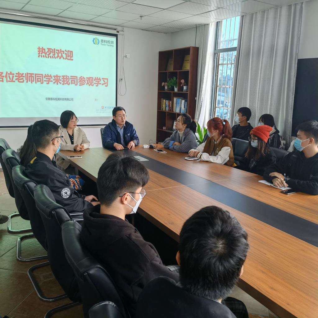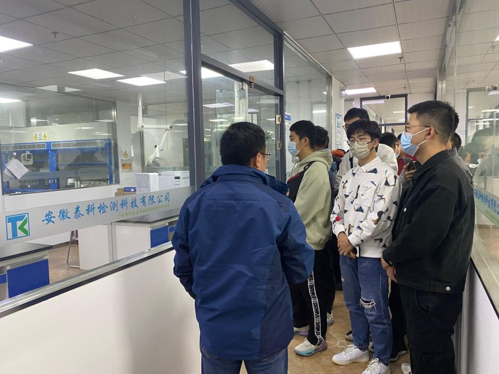 本网讯  11月18日下午,太阳成官网组织部分员工前往安徽泰科检测科技有限公司进行参观交流,感受企业文化、体验工作氛围,进行专业思想教育,落实就业指导实践,助力员工职业规划,活动由专职辅导员黄伟丽老师带队。