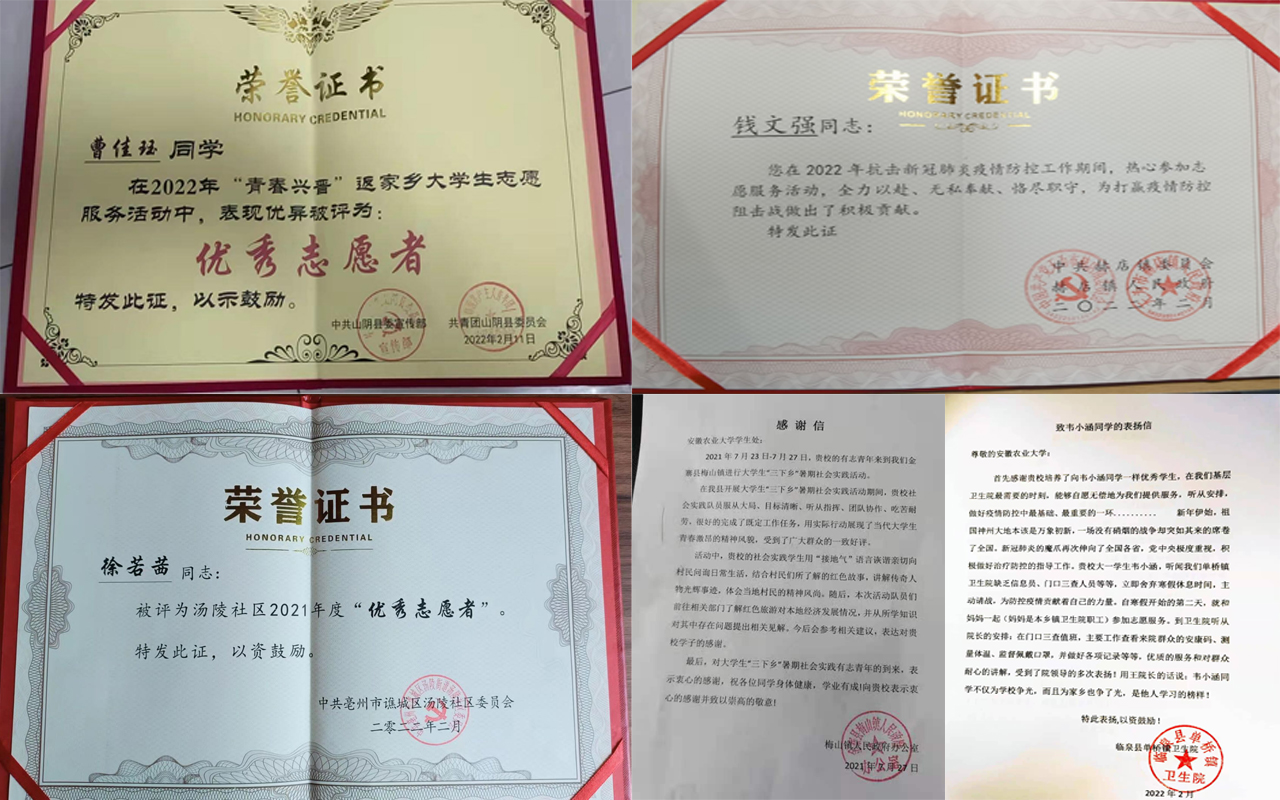 本网讯 近日,太阳成官网陆续收到来自各地政府机关、社区、村委会、街道办、卫生院给予学院员工的表扬信和颁发的荣誉证书。信中分别对公司本科生余琪、左博文、隆岑、韦小涵、张颖、徐若茜等同学寒假期间积极参与当地疫情防控工作提出表扬,表扬公司学子的责任担当,感谢他们的义无反顾。