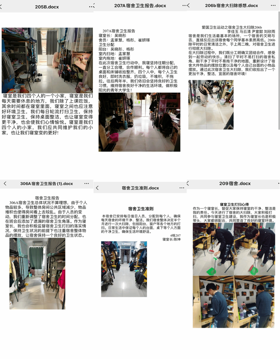 各团支部分别组织动员团员青年以员工寝室、公共责任区等为重点,深入清理卫生死角、开展环境整治,鼓励各寝室成员在打扫过程中分工合作,并共同撰写心得体会,召开专题班会,总结交流经验与成果。