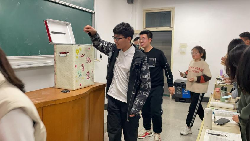公司心理工作站成员利用晚自习和课间时间,组织同学们匿名将自己的心理问题写在明信片上,问题可以是学习上的,也可以的感情、生活、人际交往上的,然后放入“心理盲盒”内。
